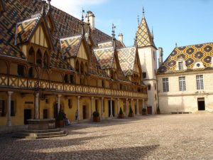 After lunch is a guided tour of the l’Hôtel-Dieu, Beaune’s most iconic building, founded in 1443. With the passing of time, various donations of vineyards to the Hôtel-Dieu allowed it to become self-funding by virtue of the auction of the Hospices de Beaune, a yearly event. It became a community of carers, grouping with similar establishments in Pommard, Nolay, and Meursault and known as the “Hospices de Beaune”. Many donations of – farms, property, woods, works of art and of course vineyards were gifted to it, by grateful families and generous benefactors. It was receiving patients up until as recently as the 1970s.